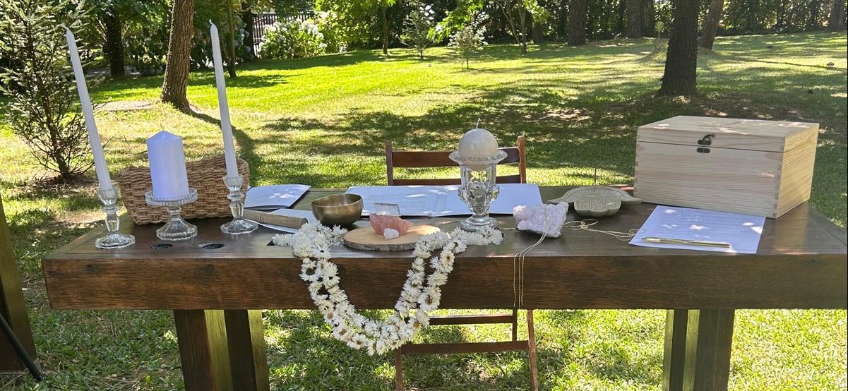 Momento Especial: Celebração da Cerimónia. Chegada uma hora antes ao local para agilização de pormenores e montagem da mesa cerimonial. Momento único, sem limite de duração, inundado de simbolismo e conexão espiritual.